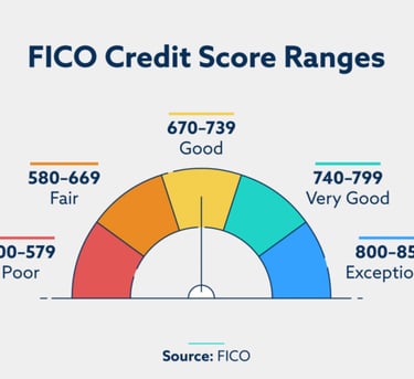 A FICO Score is a three-digit number (300-850) that lenders use to predict your credit risk, showing how likely you are to repay debt, based on data from your Experian, TransUnion, and Equifax credit reports. It's calculated using five main factors: Payment History (35%), Amounts Owed (30%), Length of Credit History (15%), New Credit (10%), and Credit Mix (10%), helping lenders decide on loans, interest rates, and limits.